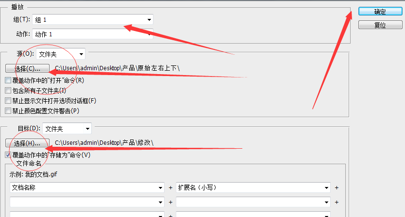 8. 这样“批量水印”动作已经记录完毕,下面就是应用“该动作”来进行“批量处理”。“源”选取我们要添加水印图片的那个文件夹,“目的”选取我们新建的那个添加水印后的文件夹,最重要的一点哦,一定要勾选覆盖动作“存储为”命令哦。最后确认。(文件--自动--批处理)